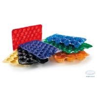 Uma gama completa de tamanhos (conforme os standards do mercado), formas (frutos redondos, pêras, kiwis) e cores (lustrosos e opacos, também personalizados com o logotipo do cliente), Os nossos alveolos respondem a todos os requisitos de embalagem das frutas frescas.